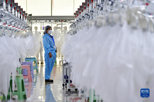在甘肅省臨夏回族自治州積石山保安族東鄉族撒拉族自治縣,依托東西部扶貧協作平臺引進的服裝加工企業甘肅拓奇扶貧車間的員工在服裝加工生產線上作業(2020年8月9日攝)。新華社記者 陳斌 攝 “日子越過越好。”武威市古浪縣黃花灘生態移民區富民新村黨總支書記兼村委會主任張延堂說。走進這個從山溝溝里搬出來的貧困群眾組成的移民新村,高效溫室大棚鱗次櫛比,安置房寬敞明亮,人居環境優美整潔。全村1379戶搬遷群眾依托產業脫貧,2021年全村集體經濟收入達到166.5萬元,600多名群眾實現就地就業。 構筑國家西部生態安全屏障