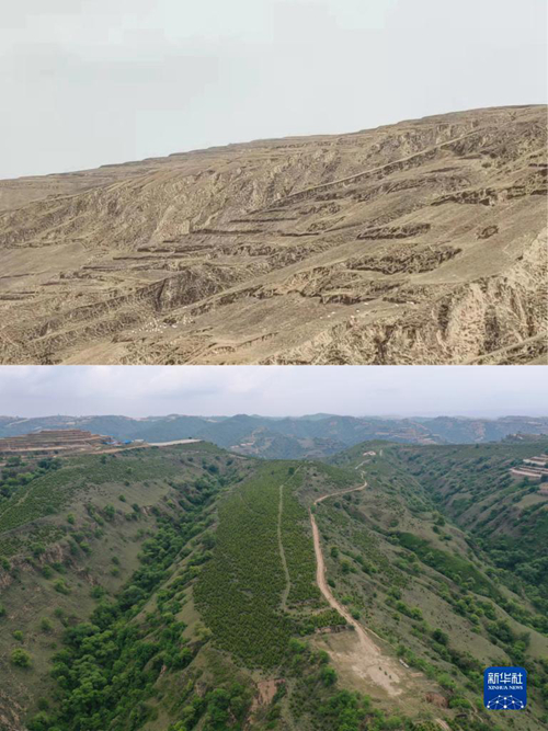 拼版照片:上圖為2013年拍攝的甘肅省慶陽市華池縣南梁鎮高臺村荒山景象(資料圖片,華池縣自然資源局供圖);下圖為2022年5月25日拍攝的甘肅省慶陽市華池縣南梁鎮高臺村萬畝苗林示范點景象(無人機照片,新華社記者杜哲宇攝)。新華社發 2019年8月,在甘肅考察中聽取省委省政府工作匯報時,習近平總書記強調,要加強生態環境保護,正確處理開發和保護的關系,加快發展生態產業,構筑國家西部生態安全屏障。 甘肅全省上下深刻汲取祁連山生態環境破壞問題教訓,綠色發展成為廣泛共識。3年來,甘肅省連續出臺關于祁連山保護一攬子政策措施,多舉措建立祁連山生態定期監測分析和評估預警機制,推動祁連山生態保護工作由集中整改向常態化轉變。 山清水秀換來“點綠成金”。祁連山下的張掖市2021年以60年為期的35.1萬畝造林碳匯項目進行交易,實現經濟收益400多萬元。截至目前,甘肅參與全國碳市場累計交易量達455萬噸,累計交易額約1.98億元。