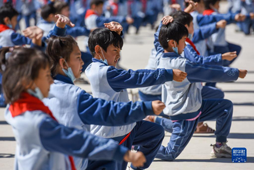 在新疆阿克蘇地區烏什縣依麻木鎮國家通用語言小學,學生們在做課間操(2022年6月8日攝)。新華社記者 丁磊 攝 如今,新疆各族群眾逐步實現在空間、文化、經濟、社會、心理等方面的全方位嵌入,中華民族共同體意識在各族人民心中深深扎根,激發出同心共筑中國夢的強大力量。 推動新疆更好更快發展 2014年習近平總書記在第二次中央新疆工作座談會上指出,要堅定不移推動新疆更好更快發展,同時發展要落實到改善民生上、落實到惠及當地上、落實到增進團結上,讓各族群眾切身感受到黨的關懷和祖國大家庭的溫暖。 黨的十八大以來,新疆一直處于基礎設施建設高峰期。在吐哈盆地,一座座太陽能發電站正在把豐富的光熱資源轉化為電力;在伊犁河谷,一個個水利工程滋養著萬畝良田。2021年,新疆實現地區生產總值1.6萬億元,固定資產投資突破8200億元,主要指標超額完成全年目標任務,實現了“十四五”良好開局。