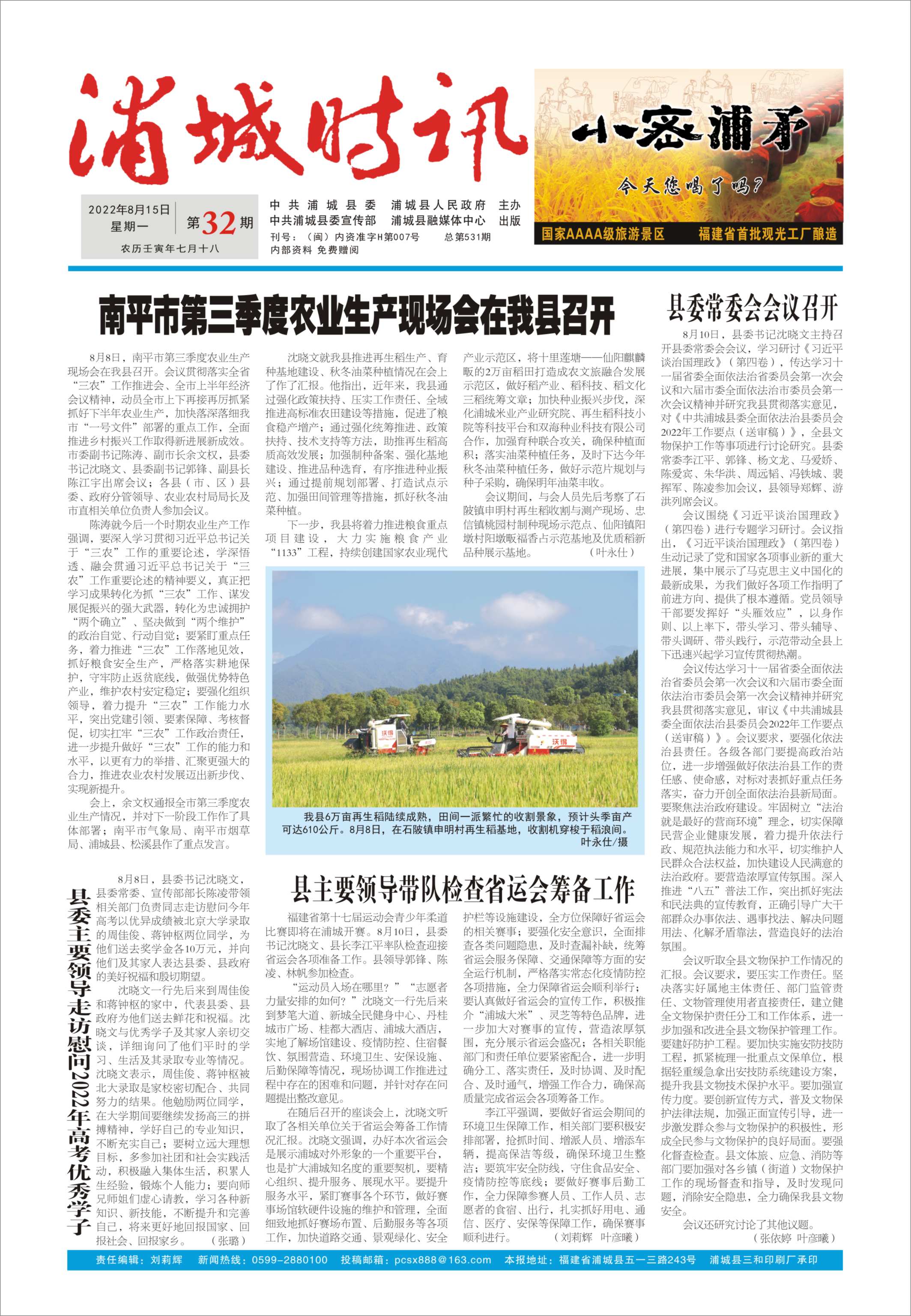 | 2022-08-25 11:57:39??來源:浦城新聞網 責任編輯:肖練冰 我來說兩句 |