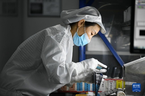 在隆基綠能科技股份有限公司西安切片工廠,工人在進行檢測包裝作業(2022年1月18日攝)。新華社記者 李一博 攝