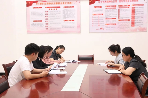 定期開展司法文明研修活動 以黨建為引領,將支部建在法庭上。獨具一格的黨建文化墻,嶄新整齊的桌椅,寬敞明亮的“學習園地”……走進水南法庭,黨建活動室主題鮮明、黨建氛圍濃厚。水南法庭重視黨建知識學習教育,充分發揮黨員的先鋒模范作用,創新“黨建+家事”審判工作機制,深度融合黨建與家事審判工作,走出一條以黨建引領家事審判的路子。 以文化為底蘊,深化司法文明研修。組織法庭干警參觀廖俊波家風家教館,多形式多途經開展常態化警示教育活動,上廉政課、讀廉政書、觀廉政片,向干警家屬發放廉政公開信、倡議書,簽訂移風易俗承諾書,通過讀書交流會、講座培訓、專業法官會議等形式,定期開展司法文明研修活動,從深層次、根源上提升審判執行工作質效和司法公信力,培育廉潔家風。
