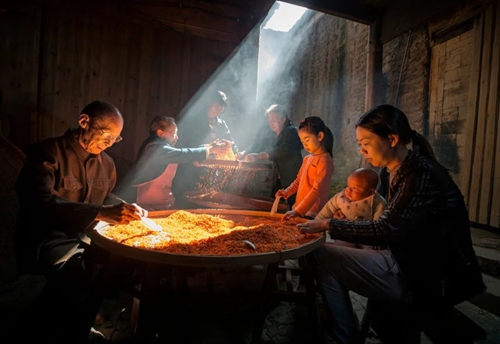 千年九龍桂 李宇倩/攝(資料圖片) 浦城丹桂花朵大,花瓣厚,艷麗如丹,清香襲人,當(dāng)?shù)厝顺7Q之為“木樨”。對她,浦城人有種特殊的情結(jié)。他們把這種情結(jié)融入“親親一杯木樨茶”的待客之道,世代相傳;融入詩歌、舞蹈、戲曲、字畫、剪紙、攝影等各種文藝作品,形成厚重獨特的丹桂文化。 “親親一杯木樨茶,千年習(xí)俗養(yǎng)育了她…”一首《親親一杯木樨茶》唱出了浦城人民對丹桂的情有獨鐘,也道出了他們千百年來的好客之道。清梁恭辰在《蜜浸》中記載:“浦俗嫁女必用蜜浸果品,以多為貴,至少亦須數(shù)百瓶……婿家往往蜜浸之精粗,卜來婦之吉祥與否。”“浦城大小燕集,以及新正(正月)款客,新賓登門,無不需此。”客來敬茶,以茶示敬,以茶為禮,與吉祥、友善相連,成為了一種生活方式、一個民間習(xí)俗。用丹桂茶待客成為浦城人最高和最親的禮節(jié),延續(xù)至今。古往今來,在浦城,每有貴客來訪,主人都會敬上一盅清香四溢的木樨茶,寓意清清吉吉、富貴呈祥。