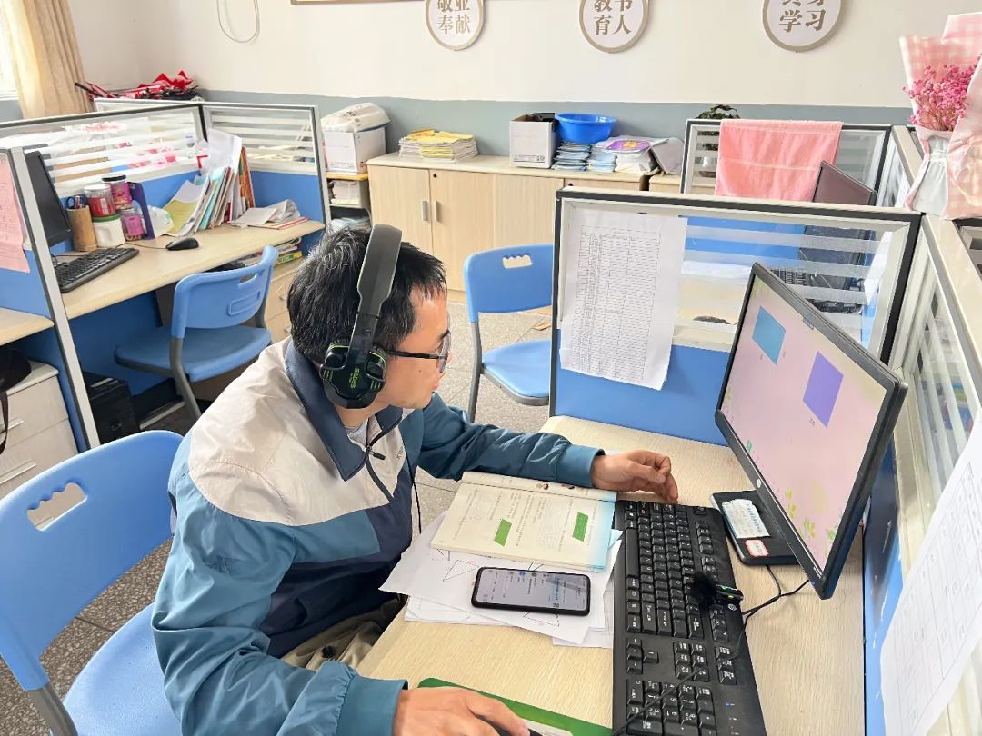 “同學們,現(xiàn)在我們準備上課,我們今天要學習的是平行四邊形的面積……”10月31日,在浦城縣實驗小學,五年級(四)班數(shù)學教師嚴永智正在辦公室內進行線上教學。