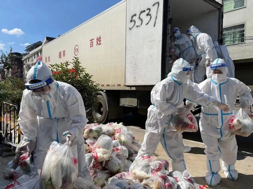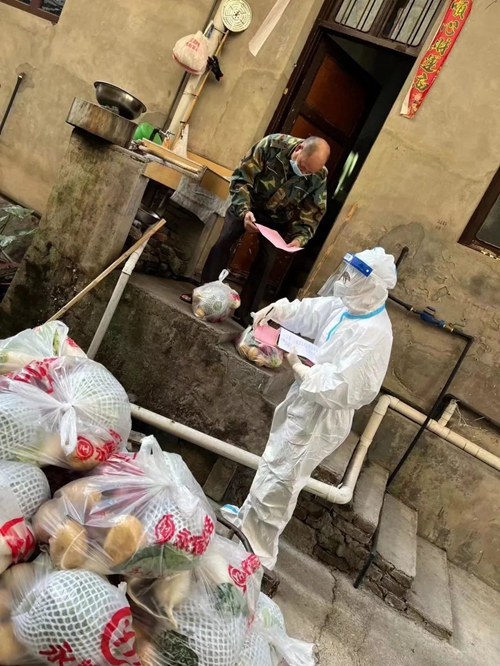 ▲貼心服務(wù)受好評 有些隔離住戶家里 有養(yǎng)貓、養(yǎng)雞、養(yǎng)豬的 家里的牲畜也需要 “管家們”幫忙照看一下