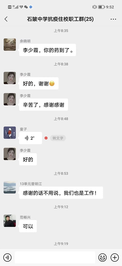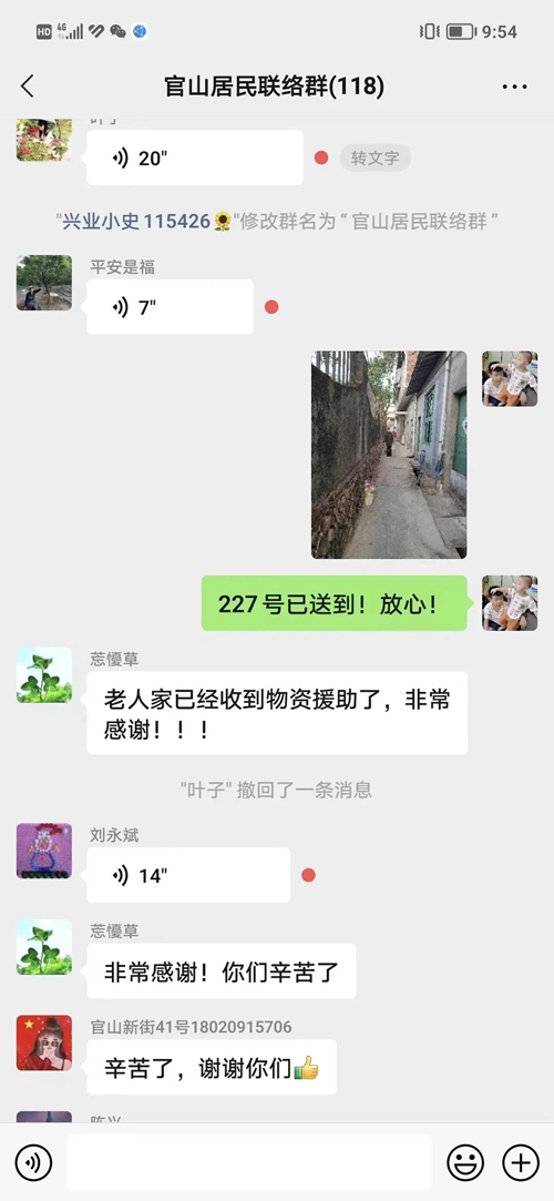 疫情面前,兵貴神速 10月26日 石陂鎮(zhèn)封控9單元志愿者們剛一進(jìn)駐 便配合網(wǎng)格員馬不停蹄地將該區(qū)域走了個遍 挨家挨戶摸排信息 上門做核酸 第一時間掌握了該區(qū)域村民的相關(guān)情況 建立起了微信群 24小時在線 對村民的詢問和需求做到 “有問必有答,事事有回應(yīng)” 為村民生活保駕護(hù)航
