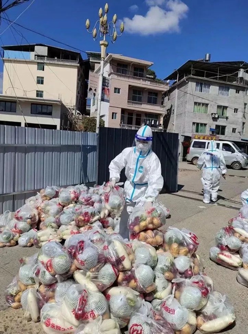 “林家娘子軍”在打包物資 浦城縣綠新林業有限責任公司的徐曉云也是此次石陂抗疫中的一員,剛上小學的女兒是她擔心的,但收到通知后,她毫不猶豫立即趕赴一線。每天執行著巡邏、勸導村民的工作,汗水浸濕了她的衣背,摘下口罩后,臉上還會留有深深的勒痕。每天超負荷的工作,除了消耗大量體力之外,還要直面各種消毒劑的刺激,經常會出現嗓子疼、眼睛疼、皮膚紅腫等現象。由于穿著防護服無法接聽電話,孩子想和她視頻也找不到她,黨孩子哭著給她打電話說想媽媽的時候,她終于忍不住流下了眼淚。她說:“雖然一線的工作相對要繁瑣一點,但是勞累的感覺在村民們一聲聲“辛苦”和一聲聲“謝謝”中化解。面對疫情,只有我們眾志成城,才能守護好我們的家園。”
