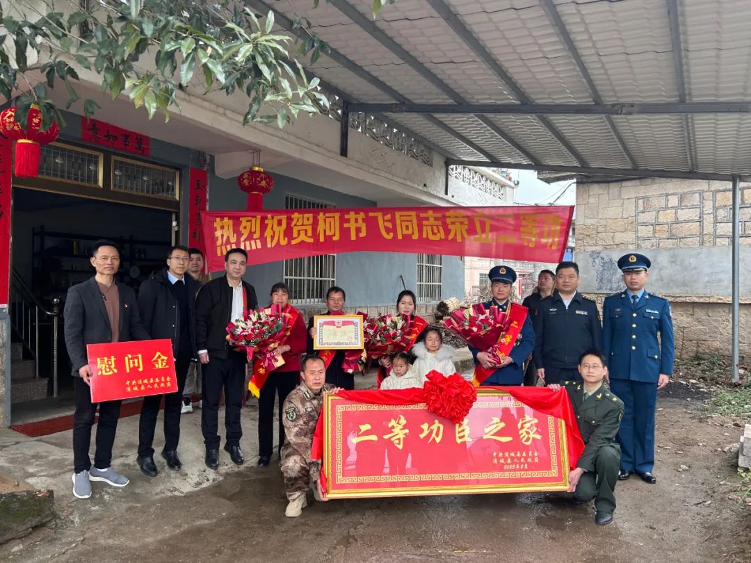 一人立功,全家光榮。2月10日,浦城縣政府副縣長陳江宇、縣人武部政委劉金順、縣退役軍人事務局局長聶崇清及柯書飛服役部隊指導員曹軒銘等組成軍地聯合報喜團,一同前往永興鎮永平村,將立功喜報、慰問金和“二等功臣之家”榮譽牌匾送到榮立二等功的現役軍人柯書飛家中,與軍人軍屬共享榮耀和喜悅。 柯書飛,2008年8月特招入伍,現任空軍某部修理技師。自服役以來刻苦訓練、認真工作,曾多次被評為優秀士兵,榮立個人二等功1次、三等功3次。2021年,歷經5個多月的準備,在全國“匠心杯”裝備維修職業技能大賽中取得優異成績,經部隊黨委批準,給予二等功獎勵。 當天上午,報喜團抬著牌匾,高舉橫幅,將喜報送到柯書飛的家中,其親屬在接過滿載著榮譽的喜報和厚重的牌匾后,喜悅與自豪之情溢于言表。柯書飛的妻子緊攥著胸前的綬帶激動地說:“這次他榮立二等功,作為他的妻子,我也倍感榮耀。我希望他在部隊里刻苦勤奮,做好自己的工作。我們的小家有我在,不用擔心。”隨后,報喜團一行與柯書飛一家圍坐在一起、拉起家常,關心柯書飛一家的工作、生活情況,幫助他們解決實際困難。 喜訊傳家鄉,禮儀重千金。浦城縣近年來始終堅持軍地聯合為所有獲譽立功軍人家庭送喜報工作,把軍功放在聚光燈下,用榜樣的力量催人奮進,讓更多的人感受到了從軍報國的無尚光榮,極大地增強了軍人軍屬的自豪感和榮譽感,更好的凝聚了“參軍受尊崇、退役受尊重”的社會共識。(黃曉婷 程張寰) |