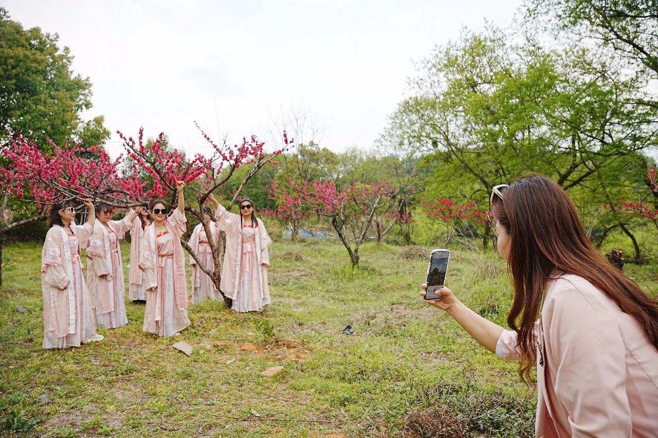 春和景明,溪水潺潺,三五成群,高談嬉笑。仲春時節,浦城縣萬安鄉大游郊野公園游人如織,朵朵嬌艷的梅花映入眼簾,南浦溪環村而過,上百棵麻柳樹掩映其中,宛如一幅秀麗的山水畫卷。 近年來,大游村以黨建引領,綠色發展為理念,積極謀劃發展道路,立足鄉村生態優勢,不斷創新機制,改善人居環境,因村制宜發展鄉村旅游產業,推動鄉村生態建設與經濟發展,打造宜居宜業和美鄉村,奏響鄉村振興交響曲。 “前兩天我們去了農場采摘了草莓,看到這片桃花林花開得正艷,今天就邀上了好姐妹,穿上古裝來拍美照。”近日,在桃花林賞花的張女士笑著說,郊野公園還可以燒烤野炊,活動安排充實又有趣。