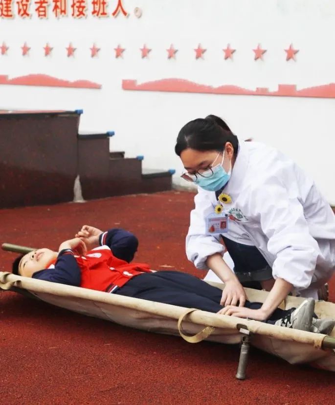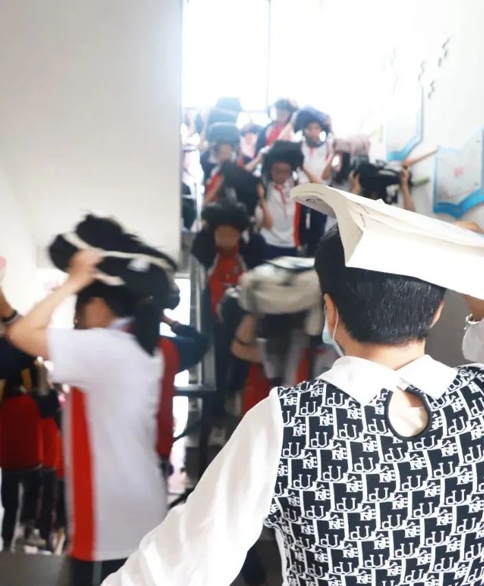 一分鐘后,信號員發出“地震暫時過去,立刻緊急疏散”的信號,老師組織學生打開教室前后門,迅速撤離。全校師生按照指定路線和順序安全疏散到操場,并及時清點、匯報人數,發現四年級有位學生未隨隊疏散,于是演練總指揮立刻安排救援組前往班級救援,最后安全抵達安全區域,確保不漏一人,并有配備醫護人員隨之進行專業的全身檢查,演練過程迅速、規范、有序。