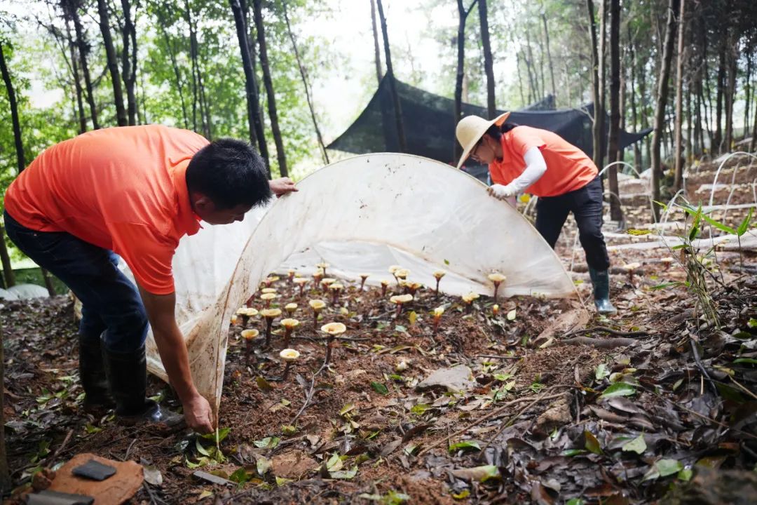 工人們正在管護靈芝 南源垅基地,是仙芝科技(福建)股份有限公司林下靈芝種植基地之一,主要種植的品種有赤芝、紫靈芝、松山靈芝等。據介紹,仙芝科技在該基地發展林下種植面積30畝左右,吸納了周邊5戶村民入股。目前,已吸收工人20余人參與靈芝種植、管理、生產。半個月前,官田村村民周華弟加入了靈芝種植隊伍。“現在每天種植靈芝能收入200元,每個月做25天以上,一月下來收入接近5000元?!敝苋A弟笑著說,“真正實現了‘靠山吃山’?!?/span> “靈芝的生長需要三分陽七分陰光照,采用林下種植,可充分利用林下的遮陰率,不需要搭蓋陰網棚?!毕芍タ萍迹ǜ=ǎ┕煞萦邢薰净夭块T經理劉國輝介紹,與大田仿野生種植來對比,通過分散式種植、成片蓋小棚采集孢子粉、采集子實體等規范化管理,林下種植產量雖會少一些,但種出來的靈芝有效成分含量更好,品質更高。 “南源垅基地所在位置的溫度、濕度、日照等氣候因子均適宜靈芝生長,在此發展林下種植可以實現優勢互補,具有良好的經濟效益和生態效益?!惫饚X國有林場榆塢分場場長高福州介紹,合理利用林下空間種植靈芝,不占用農地,不與糧爭地,有效緩解“土地非糧化”難題,既解決了種植所需土地問題,又節約、集約利用土地,減少了搭建遮陰棚的成本。 “浦城的好山好水,適合靈芝種植的地非常多,南源垅基地這個試點是比較成功的。等林下種植技術成熟,將會對浦城林下空間種植進行全面推廣。”劉國輝告訴記者,前期,縣林業部門主動與企業對接,圍繞縣委、縣政府建美綠水青山,做大金山銀山,做強“一朵芝”,促進鄉村振興的目標,加快建設林下經濟科技示范基地和“試驗田”。根據靈芝種植的條件要求,現已經在浦城篩選出適合靈芝種植的林下空間2000畝。