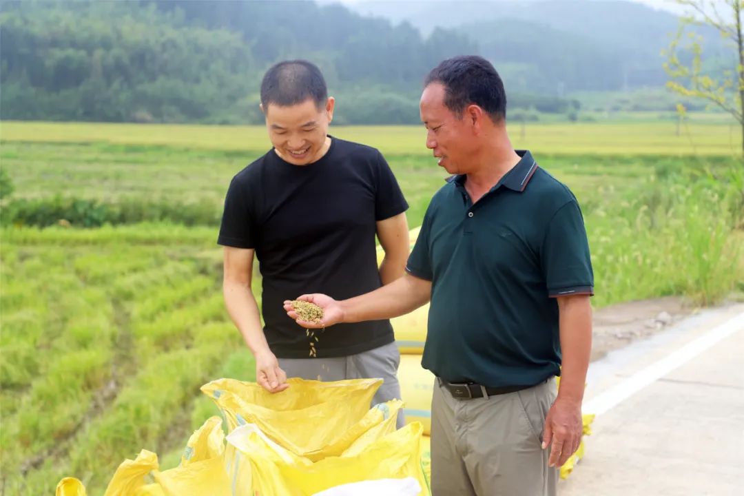 機收現場 福建東南天力種業有限公司技術負責人王增養走在田埂上,不時彎腰拔上一穗所結稻種細看。 多年來,忠信鎮積累了深厚的雜交水稻制種基礎。“今年雨水充沛,種子質量和產量都不錯。”王增養介紹,忠信鎮的氣候條件及制種經驗,讓他看到了機遇。2020年,他索性入股注冊公司,并長期住在浦城,與忠信農戶合作,走上了服務當地雜交水稻制種的路子。 這片以“公司+合作社+農戶”模式運行的制種基地,在稻香里迎來了收割季節,一臺臺收割機在田里來回穿梭,裝入谷粒,散出稻草。 “今年,我總共流轉了100多畝田進行雜交水稻制種,目前已經收割了40畝,預計9月初就能收割完。”忠信村種糧大戶黃祖全說,今年是個豐收年,除去成本,收入將達20萬元。 據悉,王增養在為黃祖全等合作農戶提供秧田管理、栽培技術、父母本抽穗等技術的同時,還要負責將他們收成的合格種子全部收購。收割后的閑田,冬天可以種油菜,這樣既能增加耕地復種指數,改善土壤結構,又為農戶創收,一舉多得。 20世紀80年代初,浦城縣便開始了雜交水稻制種生產基地建設。近年來,隨著農業基礎設施條件的改善,浦城縣制種產業也開始大規模發展,“就忠信鎮來說,2009年只有5戶農戶進行雜交水稻制種,面積不到100畝。”忠信鎮農技站站長江世輝介紹,今年,全鎮雜交水稻制種面積達1.7萬畝,是全縣第一。