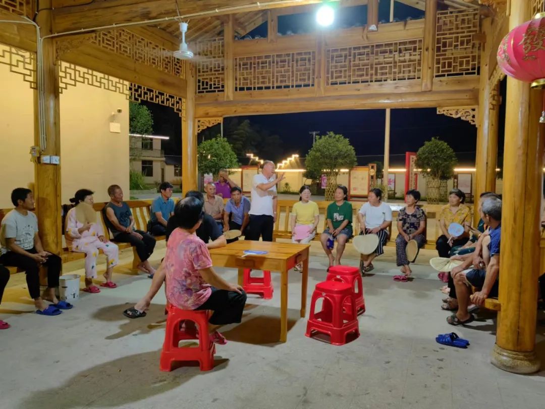“今天我跟大家分享兩個小故事,一個是‘不砍一棵樹,村民也致富’,雙同村黨支部書記李仕銀帶領村民走出一條‘綠水青山就是金山銀山’的綠色發展之路。另一個是‘雙領辦’架起黨心民心橋梁,管厝鄉黨委學習貫徹習近平總書記關于鄉村振興的重要論述精神,積極探索實踐‘雙領辦’新機制,管厝鄉黨委政府領辦國有企業管厝產業發展有限公司,19個村黨支部統一領辦‘樵夫家園’生態農業專業合作社,助力鄉村振興的故事……”深秋時節,10月7日傍晚,山野鄉間的微風已有些涼意,但是在浦城縣富嶺鎮殿下村的“葉紹翁議事廊亭”里熱鬧非凡,村民正圍坐一起,聆聽村黨支部書記張培建分享身邊的小故事,期間村民們還會結合村里的發展情況互相討論。