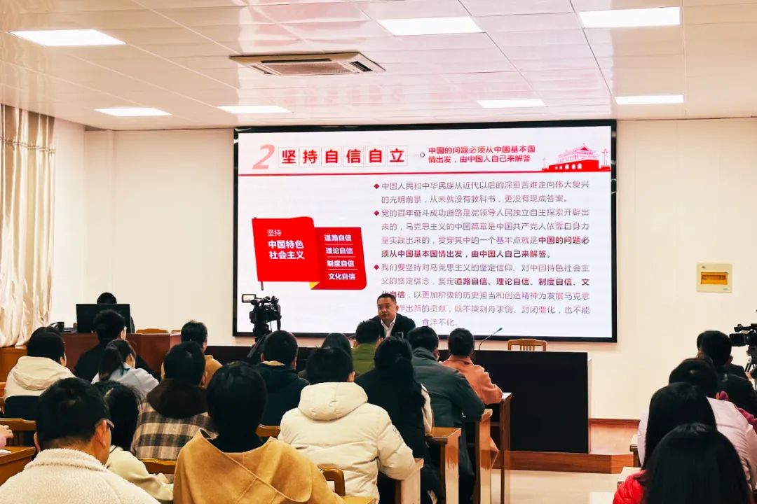 根據(jù)主題教育工作安排,11月30日,縣委副書記、縣長李江平到縣委黨校,以“學(xué)深悟透‘六個必須堅(jiān)持’奮力譜寫浦城綠色高質(zhì)量發(fā)展新篇章”為主題,為第二十三期中青年干部培訓(xùn)班學(xué)員講授了一堂生動的專題黨課。縣委常委、組織部部長馬愛嬌參加。