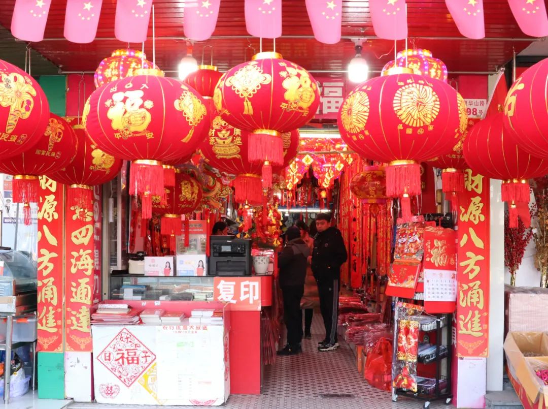 “超市里年味這么濃,感覺提前過年了!” 1月24日,在掛滿對聯和燈籠的超市里,看到紅彤彤的年貨貨架時,市民們發出了由衷的感慨。 小編在浦城的商場、市集和花店觀察到,盡管距離農歷春節還有半個月的時間,但進入2024年以來,濃濃的龍年新春年味已經提前抵達浦城。 在皇華山路,眾多店鋪已經布置了,充滿龍年特色的裝飾品,而色彩鮮艷的龍年特色年貨,也已經出現在各個店鋪貨架上。 一家獨特的書店吸引了小編的注意,對聯如同屏風一般裝飾在肉眼可及的墻面上,可愛多樣的龍年吉祥物讓小朋友們流連忘返,連店家的小狗都穿上了專屬的“龍年戰袍”!