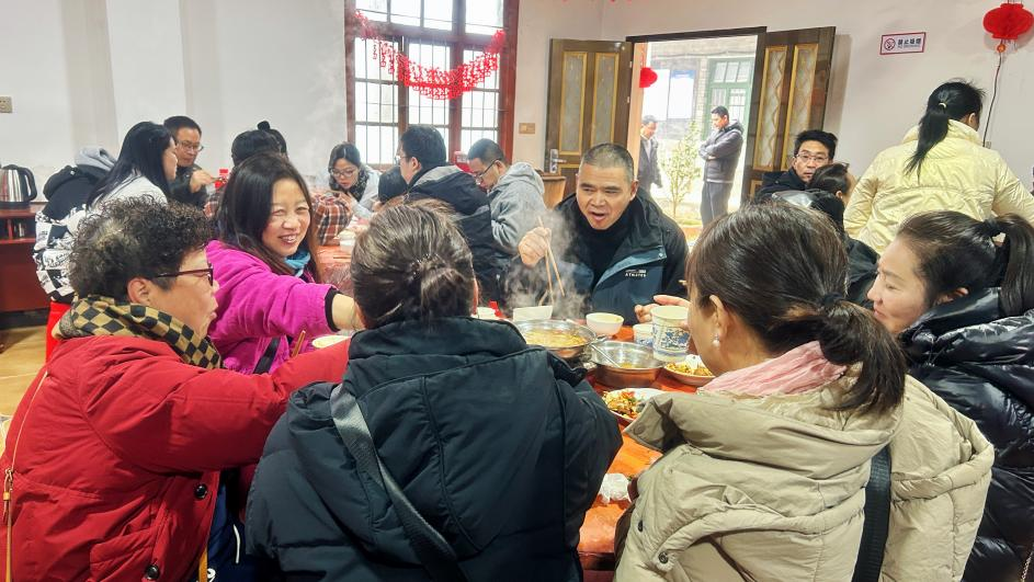 “一起過(guò)小年——品嘗酸菜宴”活動(dòng) 中午12時(shí)許,酸菜宴正式開席,紅燒鴨子酸菜鍋、冬筍五花肉酸菜鍋、豆腐白菜鍋、大腸炒酸菜、酸菜炒瘦肉、香腸酸菜一一上桌,美食在鍋中“咕嚕咕嚕”地沸騰,空氣中處處彌漫著過(guò)年的味道,大家在一片歡聲笑語(yǔ)中品嘗著美食,共迎龍年新春的到來(lái)。 “黃畢洋酸菜太好吃了,愛吃。”賓客們頻頻點(diǎn)贊。為了讓賓客們品嘗到正宗的黃畢味道,黃畢村為大家準(zhǔn)備了以“原產(chǎn)地食材”“地道烹飪方式”為原則,以“黃畢洋酸菜”為主要元素的酸菜宴。黃畢洋酸菜色澤金黃,酸咸適中,食之脆嫩爽口,各色菜品加入酸菜,猶如注入靈魂,讓人回味無(wú)窮。 “我們是從杭州自駕而來(lái),這風(fēng)景不錯(cuò),菜也特別好吃,今天不虛此行,等夏天我還來(lái)玩。”前來(lái)參加活動(dòng)的阿仙姐和她的姐妹團(tuán)十分滿意。