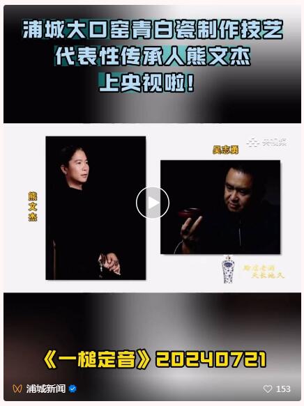 浦城大口窯青白瓷制作技藝代表性傳承人上央視啦!