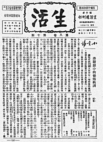 《生活》周刊第八卷第十期 被迫流亡海外回國(guó)后,他因不遺余力地宣傳抗日,與沈鈞儒等被捕入獄,成為著名的“救國(guó)會(huì)七君子”之一。 1944年7月24日,鄒韜奮因病在上海不幸去世,年僅49歲。