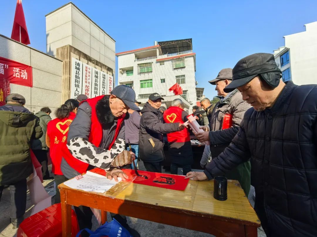 1月16日上午,由浦城縣委老干部局、縣老區建設促進會、縣民政局、浦城縣老年書畫藝術研究會聯合主辦的“移風易俗樹新風翰墨凝香送春?!?025迎新春送春聯文化下鄉惠民活動走進仙陽鎮,以文化形式獻上蛇年新春祝福。