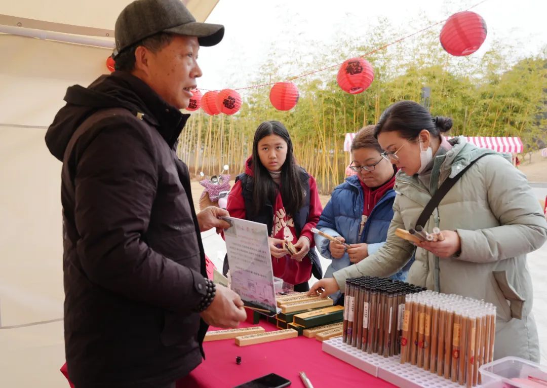 新春集市活動現場 集市上,琳瑯滿目的商品讓人目不暇接,既有承載著傳統民俗記憶的手工藝品匠心獨運,一針一線、一筆一劃皆為傳承,為生活注入藝術氣息,還設置有木樨茶制作、浦城剪紙、青白瓷等特色技藝展示,讓大家感受新年喜慶的同時,傳播浦城特色,傳承非遺文化技藝。除了日用品、裝飾品,年貨好物自然也不會少,從象征團圓的糕點,到寓意甜蜜的冰糖葫蘆,每一件都滿含新春祝福,每一口都是舌尖上的新年味道。