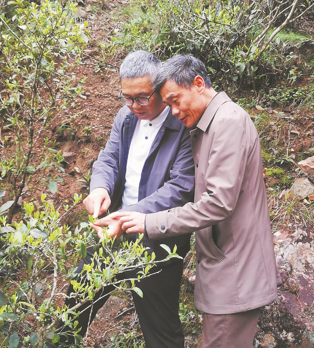 福建省農(nóng)科院茶葉專(zhuān)家在觀察茶樹(shù)生長(zhǎng)情況。 本版圖片均由受訪(fǎng)者提供 |