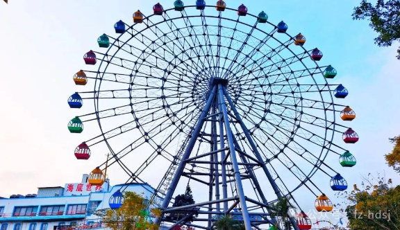 圖源:福州左海海底世界 福建省首座時鐘主題摩天輪 福州兒童公園摩天輪 整機外觀似一個優美的鐘表表盤 該摩天輪直徑達25米 輪外裝掛16個熱氣球造型座艙 每個座艙可乘坐4人 擁有360度全景視野 |