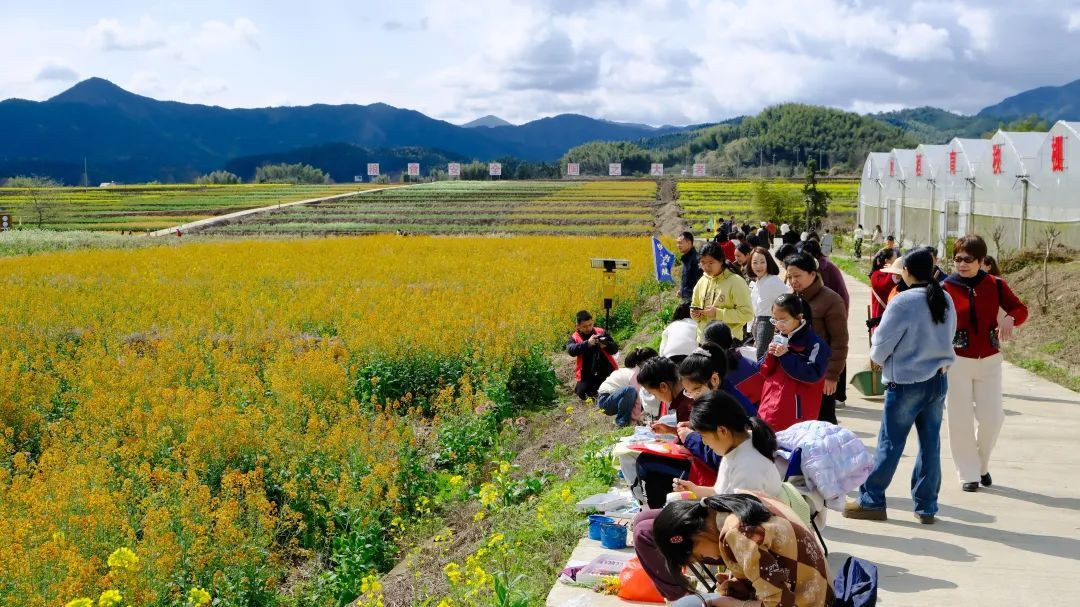 五彩繽紛的油菜花海吸引游客打卡 走進石陂鎮油菜花基地,一片片五彩繽紛的油菜花海,讓廣袤田野成為歡樂的海洋,吸引了四面八方的游客前來共賞。田間設置觀景臺、打卡點設施,并貼心地設置攤點,現場提供風箏售賣、漢服出租給游客。漢服以鮮活的聲色為春色增添美麗,也點燃著生命的熱情和活力。 油菜花節期間,“旅游+體育”鄉村健康跑、“旅游”+紅色故事宣傳、“旅游+經濟”后備箱集市和鄉土特產集市等系列活動相繼舉行,持續助推浦城農文旅產業高質量發展。