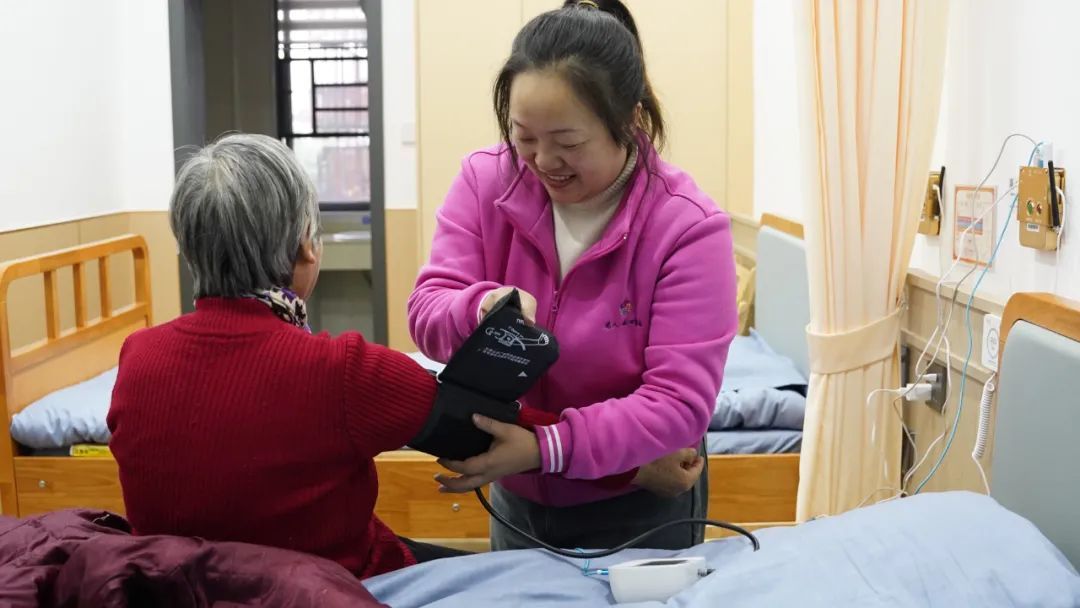 為老人檢查身體 “這一套智能醫療設備集成了多種功能,可以檢測血壓、血氧、血糖等,床位也采用了智能床墊,能夠監測老人的睡眠情況。”入駐養護中心的福建省伍心康養集團高級院長王潔說,“數據上傳系統,系統‘大小屏’互通,集成健康管理、信息服務等多種功能,在外子女打開手機APP就能知道父母的身體狀況。” 2024年初,光明社區引入榮獲“全國養老服務先進單位”的福建省伍心康養集團,以專業的運營模式及養老服務理念,立足“老有所依、老有所養、老有所樂”等多樣化個性需求,打造“嵌入式”養老“微機構”。目前,光明社區養護中心有各類床位46張,老年人助餐點、樂齡學堂、文化娛樂廣場、助浴室等空間一應俱全,可為周邊老人提供醫養、食宿、文娛等多樣化居家養老服務。 嵌入適老化的設施和資源,讓居家社區養老服務便利可及。“我們持續深化公辦養老機構改革,加大社區嵌入式養老服務機構培育力度,提供社會化、專業化、分眾化養老服務,不斷構建‘一刻鐘’養老服務圈。”周國彪說。 據悉,近年來,浦城積極探索公辦養老機構運營管理體制改革,17所鄉鎮敬老院實行公建民營運營,全縣可提供各類養老床位4200余張,其中機構養老床位2200張,護理型養老床位占比超過60%。此外,浦城還引進居家養老專業化服務企業,結合特殊困難老年人“平安通”服務試點項目,通過政府采購社會養老服務,有效提升城區3300多名“七大類老人”的養老品質。 下一步,浦城將深入推進國家級縣域養老服務體系創新試點,持續完善基本養老服務體系建設,著力構建布局合理、功能完善、運轉高效的縣鄉村三級養老服務網絡,探索可復制、可推廣、可持續的浦城經驗。(柳浪漫) |