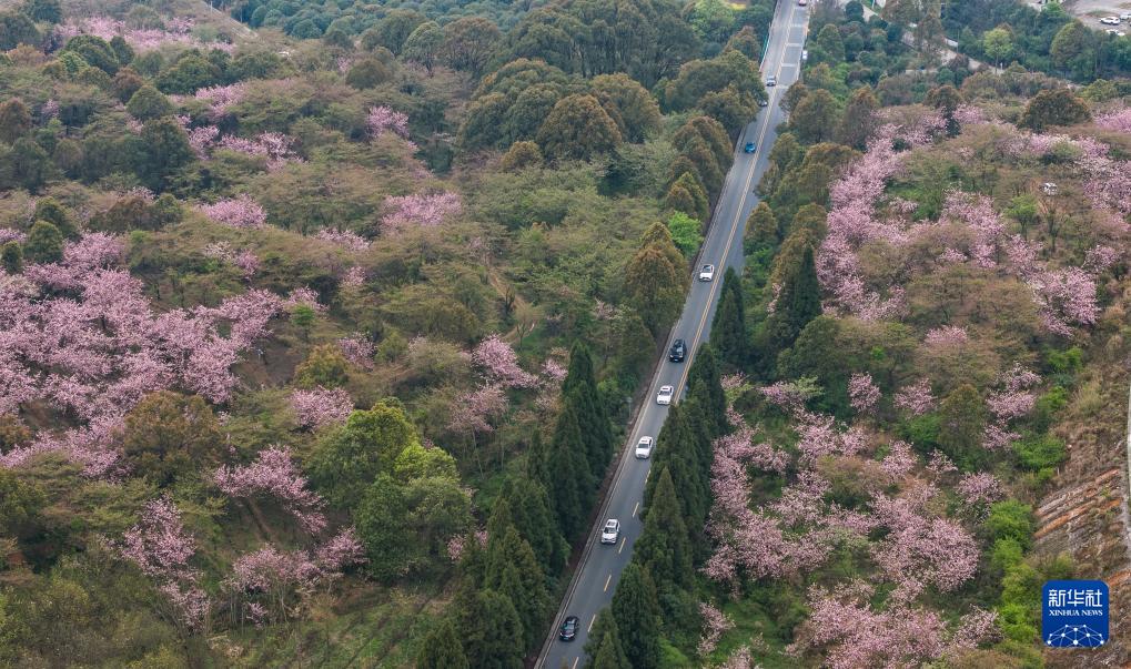 清鎮(zhèn)市紅楓湖鎮(zhèn)右二村旁的道路與花海相映(4月5日攝,無人機(jī)照片)。 清明時(shí)節(jié),貴州省貴陽市清鎮(zhèn)市紅楓湖鎮(zhèn)右二村公路旁的櫻花、海棠花競相綻放,道路與花海相映,人們驅(qū)車前來踏青游玩,感受美好春光。 新華社記者 陶亮 攝