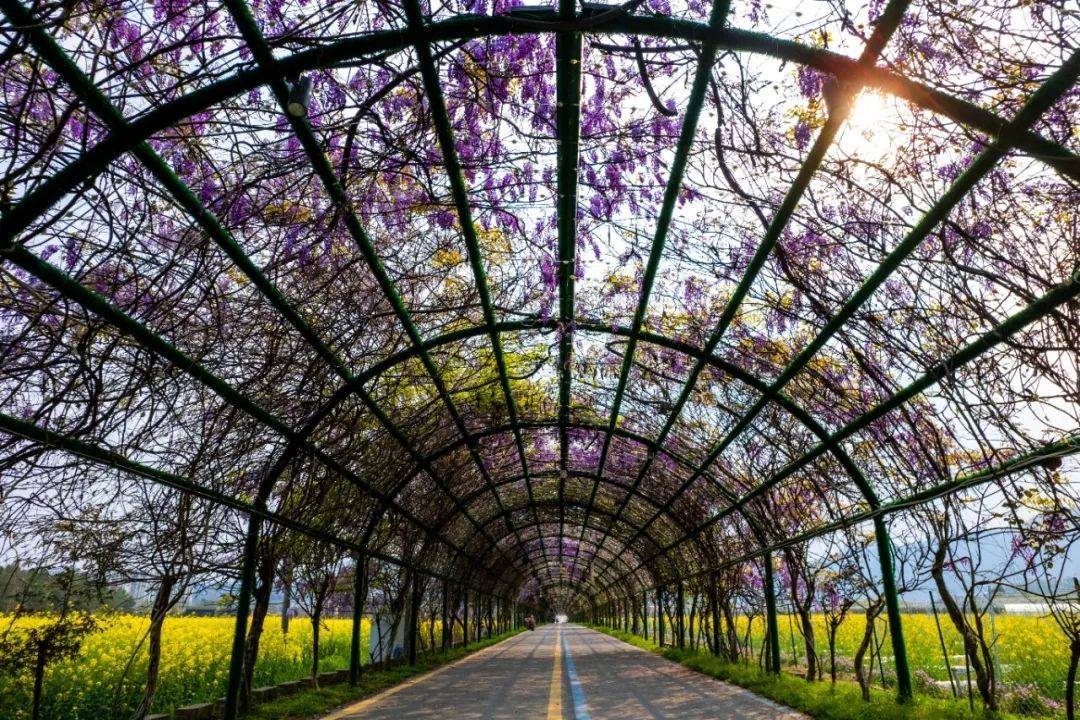 還有那花間小道,漫步其中,頭頂是交織的花蔓,腳下是飄落的花瓣,就像走在一條通往童話世界的花路。別忘了和同伴來張搞怪合影,在這浪漫花景的襯托下,你們的歡樂瞬間會被定格得更加美好。 紫藤蘿