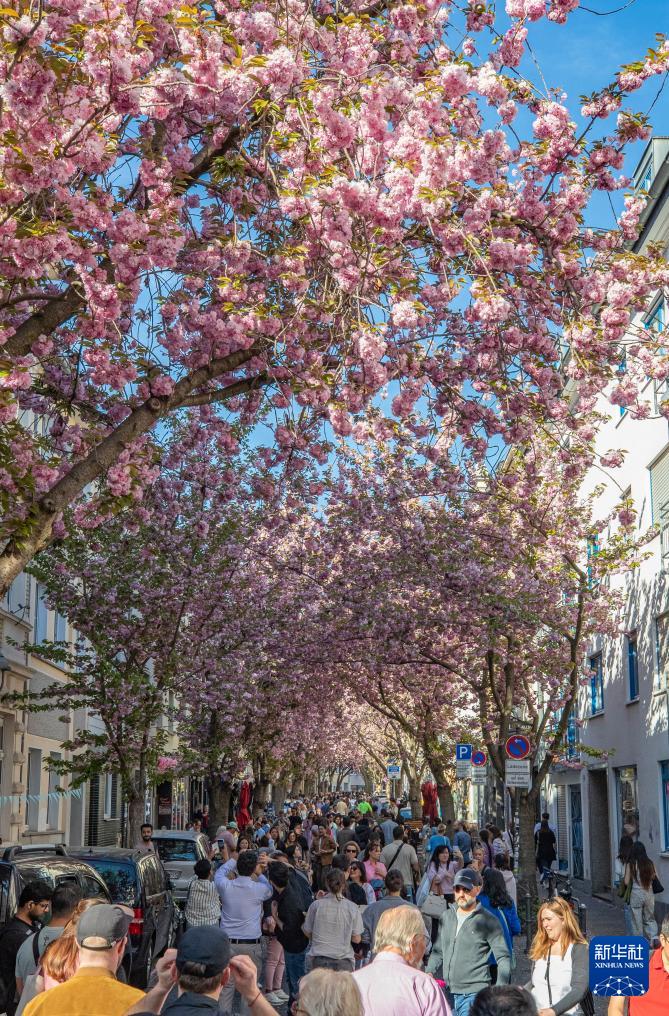 4月12日,人們在德國波恩觀賞盛開的櫻花。 新華社記者 張帆 攝