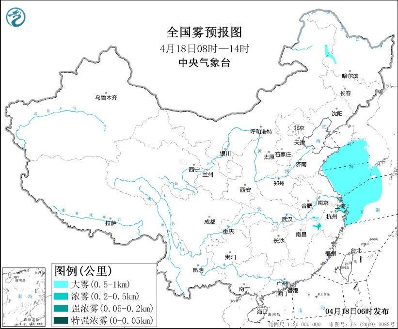 4月18日6時,中央氣象臺發布強對流天氣藍色預警、暴雨藍色預警、大霧黃色預警。 中央氣象臺4月18日06時繼續發布大霧黃色預警: 預計,4月18日白天至夜間,黃海中部和南部海域、東海北部海域、長江口及杭州灣附近海域、舟山群島附近海域、青島港、上海港、寧波港將有大霧;此外,4月18日早晨至上午,安徽南部、江西東部、浙江西部、黑龍江西部、內蒙古東北部等地的部分地區有能見度不足1公里的大霧,局地有能見度不足500米的濃霧。