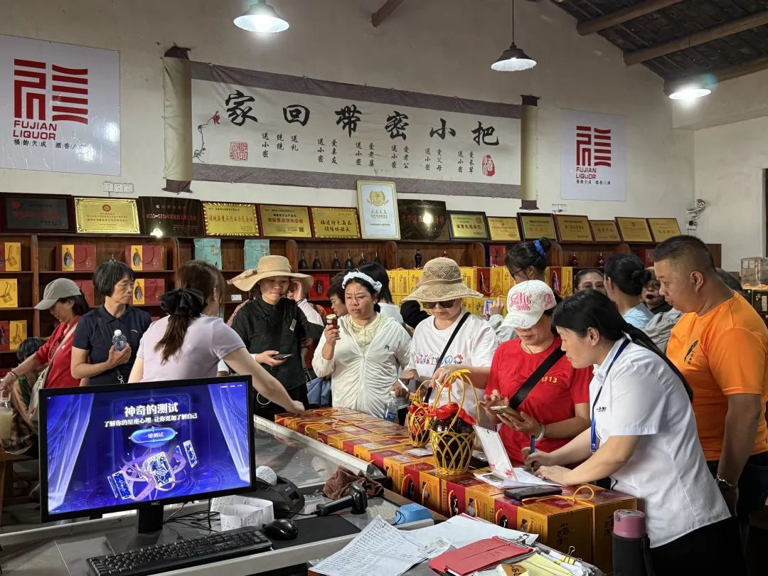 印象小密包酒文化博覽園內人頭攢動 中國包酒文化博覽園是國家AAAA級旅游景區、福建省首批觀光工廠?!拔覀兙皡^每天接待量都在2000人以上,吃、住都被提前預訂滿?!本皡^負責人告訴記者,假期縣里推出了“引客流促消費提服務”九措施和一系列的購物、停車優惠政策,許多外地游客或跟團或自駕而來,景區人氣火爆。 為激活旅游市場,“五一”黃金周期間,浦城縣多方引流,精心策劃旅游路線、搭建活動平臺、加大政策宣傳。截至5月3日18時,全縣接待游客約21.5萬人次,其中省外游客占60%。 從武夷山落地游客引流 “我們參觀了包酒文化博覽園,了解了這項獨特的技藝。一會我們還要去美術館參觀,可以說是期待值拉滿。”來自武夷山的游客周先生高興地說,“我是在武夷山旅游時,看到浦城的旅游宣傳推薦,覺得浦城是個文化底蘊濃厚的地方,而且有專車免費接送,所以就跟車來了。”