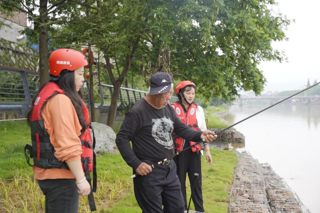 勸導河邊垂釣市民 當天下午,河濱街道組織社區工作人員頂風冒雨,沿河岸線開展拉網式巡查?!艾F在水位上漲快,岸邊泥土松軟,萬一滑倒后果不堪設想,請您盡快離開!”巡查過程中,工作人員耐心細致地對河邊垂釣市民進行勸導,向其闡明雨天垂釣的嚴重危險性,并主動協助收拾釣具,引導垂釣者盡快撤離危險區域。 社區工作人員在勸離垂釣人員的同時,還對沿河配備的救生圈、救生繩等應急救援設備進行全面細致檢查,確保設備完好無損、隨時可用。針對檢查中發現的部分救生圈老化、擺放位置欠妥等問題,第一時間進行更換和調整,并在重點危險區域增設醒目的安全警示標志,為應對突發情況提供堅實保障。
