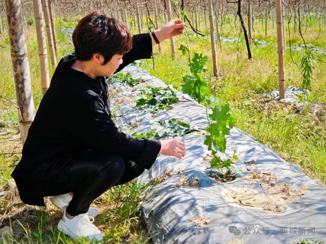 翻看真葉生長情況 近年來,浦城縣深入學習“千萬工程”經驗,探索推行鄉鎮黨委政府領辦鄉村振興公司、村黨組織領辦專業合作社的“雙領辦”機制,破解培育“土特產”中的難點問題,推動村強民富,有效激活了鄉村振興一池春水。 去年以來,河濱街道深化運用“雙領辦”機制,立足城郊優勢,街道“鄉村振興公司”做好市場調研,對接企業和市場,引進南平市餐邦農業發展有限公司,以資金入股的方式,與李梅村黨支部領辦的合作社簽訂合作協議,通過“黨支部領辦合作社+企業+基地+農戶”的運營模式,流轉120畝連片土地建立訂單蔬菜基地,發展肉絲瓜、大豆等農產品種植。 初夏的蔬菜種植基地里,新覆上的地膜泛著銀光,嫩綠的苗株與藤架交織。藤上結絲瓜,藤下種大豆的嘗試正在這片土地上悄然發芽…… “絲瓜的根系較深,而大豆等作物的根系主要分布在土壤表層,這樣可以減少養分競爭,另外大豆等作物的根系具有固氮作用,能為絲瓜的生長提供額外的養分支持。”華碧瑾介紹,科學的間作套種充分利用了空間,也有助于土壤改良,立體種植效果好。 河濱街道黨工委組織委員廖捷介紹,李梅村推行“黨支部領辦合作社+企業+基地+農戶”運營模式,村合作社負責流轉土地和用工服務,餐邦公司則負責種植和銷售端。 “我們實行統一基地育種、統一采購肥料、統一技術服務,保障農產品質量。”華碧瑾介紹,餐邦公司對接浙江海亮集團旗下的生鮮農產品品牌“明康匯”,開展“阿里山肉絲瓜”等蔬菜的訂單種植,將肉絲瓜等農產品賣到了上海、杭州等各大商超,此外,通過餐邦公司的網絡銷售平臺,李梅村的農產品也插上了“云翅膀”打開了新銷路,2024年,基地肉絲瓜總產量達30多萬斤,銷售額達30多萬元。