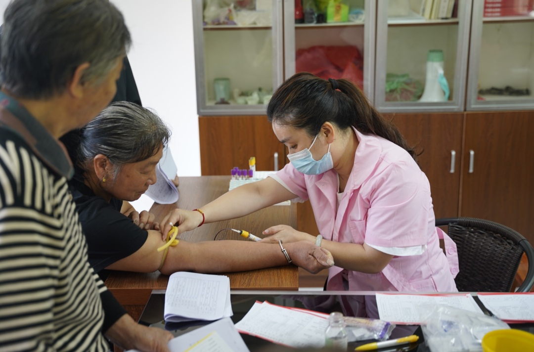 義診現場 活動現場,浦城縣山下衛生院全民健康服務團隊醫護人員為村民提供血壓、血糖檢測等基礎健康檢查,并針對常見慢性病提供專業指導。“除了平日的上門隨訪,我們每年還舉行一次大型的義診活動,為老年人提供一次免費體檢,檢測內容包括糖尿病、高血壓、慢阻肺等慢性疾病。”山下衛生院祝德斌院長說道。 隨著茶葉采收結束,許多村民返回家中,在家門口享受到了優質的醫療服務。“我們簽約的家庭醫生還會定期上門隨訪、檢查,生病了我們還可以直接電話咨詢,看病更方便了,我們心里很踏實。”村民李大哥高興地說。