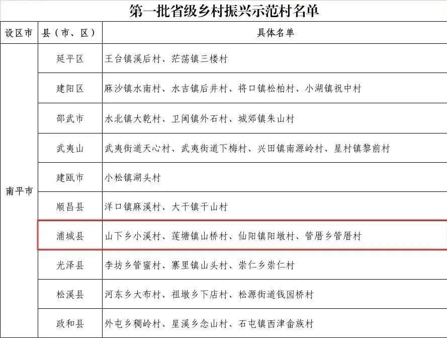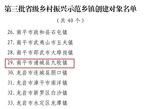 近日,福建省第一批省級(jí)鄉(xiāng)村振興示范村,第三批省級(jí)鄉(xiāng)村振興示范鄉(xiāng)鎮(zhèn)、村創(chuàng)建對(duì)象名單公布,浦城蓮塘鎮(zhèn)、九牧鎮(zhèn)、山下鄉(xiāng)等多地上榜。