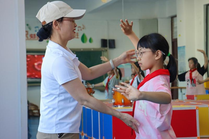 浦城縣贛劇藝術(shù)傳承發(fā)展中心藝術(shù)總監(jiān)、國家二級(jí)演員葉紅為浦城縣水南中心小學(xué)學(xué)生授課。東南網(wǎng)記者 鄭正華/攝 如今,贛劇進(jìn)校園活動(dòng)開展得有聲有色,學(xué)生們不僅積極參與排練演出,更在潛移默化中加深了對(duì)傳統(tǒng)文化的理解與熱愛。看著孩子們?cè)谖枧_(tái)上認(rèn)真模仿戲曲身段、專注練習(xí)唱腔的模樣,學(xué)校更加堅(jiān)定了將非遺教育深入開展下去的決心。“接下來,我們會(huì)繼續(xù)拓展深化剪紙、陶藝等非遺項(xiàng)目進(jìn)入校園,鍛煉學(xué)生動(dòng)手能力與創(chuàng)造力,讓學(xué)生深入了解民俗文化,培養(yǎng)耐心與專注力,體會(huì)傳統(tǒng)手工藝的獨(dú)特韻味。同時(shí)組織教研團(tuán)隊(duì),開發(fā)專門校本課程,并利用課后服務(wù)、社團(tuán)活動(dòng)時(shí)間,給學(xué)生充足學(xué)習(xí)和實(shí)踐機(jī)會(huì),讓更多本土非遺在校園里‘生根發(fā)芽’。”曾云其說。 創(chuàng)新機(jī)制“引”活水: “八大行動(dòng)”筑基全域美育生態(tài)圈 構(gòu)建“班班有歌聲、人人能展示”機(jī)制,每學(xué)期舉辦校園藝術(shù)節(jié)、書畫展覽等活動(dòng),參與率達(dá) 96%以上。 建立“校級(jí)-縣級(jí)”二級(jí)展演體系,組織的各類大型展演活動(dòng)吸引觀眾8萬余人次。 與浦城美術(shù)館、博物館等場(chǎng)館合作,每年組織1萬多名學(xué)生參與美育實(shí)踐活動(dòng)。 …… 以美育人、以美化人、以美培元。近年來,站在培育時(shí)代新人的高度,浦城縣以習(xí)近平新時(shí)代中國特色社會(huì)主義思想為指引,積極響應(yīng)《教育部關(guān)于全面實(shí)施美育浸潤行動(dòng)的通知》要求,實(shí)施美育教學(xué)改革深化行動(dòng)、教師美育素養(yǎng)提升行動(dòng)、藝術(shù)實(shí)踐活動(dòng)普及行動(dòng)、社會(huì)美育資源整合行動(dòng)等八大行動(dòng),秉持以美育人、以文化人的核心理念,把美育浸潤行動(dòng)打造成為未成年人思想道德建設(shè)的特色載體,有效促進(jìn)青少年正確世界觀、人生觀、價(jià)值觀的形成。通過開展“非遺進(jìn)校園”等特色活動(dòng),在提升學(xué)生審美素養(yǎng)的同時(shí)強(qiáng)化愛國主義教育和傳統(tǒng)文化傳承,學(xué)生藝術(shù)實(shí)踐參與率從45%提升至88%,人均年參與活動(dòng)超5次;南平市第八屆藝術(shù)節(jié)浦城縣有5個(gè)節(jié)目獲獎(jiǎng);非遺互動(dòng)體驗(yàn)活動(dòng)覆蓋學(xué)生2萬余人次。