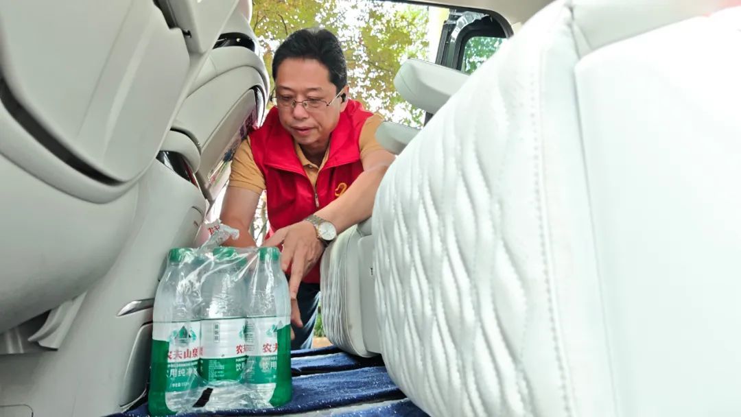 出發前仔細檢查車況 “今天,我要去送高考考生。”老陳一邊說,一邊繞車細致檢查起來。 “昨天,我去加了油,到車行給車做了‘體檢’,準備好了清涼油、礦泉水和紙巾這些學生經常會用到的東西。還特意洗了車,學生坐在干凈清爽的車里,心情也會比較好。”老陳笑著說,現在,油已加滿,車況正常,車容整潔,出發,去給考生“加油”!