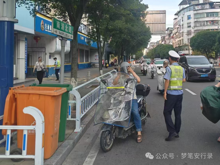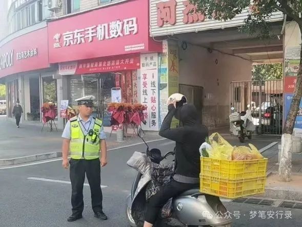 在學(xué)校、商場(chǎng)等重點(diǎn)路段周邊 交警采取“定崗+巡邏”方式 嚴(yán)查二輪車輛駕乘人員 未按規(guī)定佩戴安全頭盔等違法行為 ▼佩戴好安全頭盔