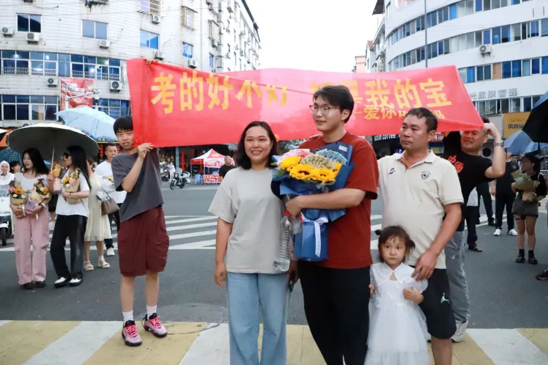 家長等待孩子走出考場 考場外,處處洋溢著溫馨與感動。眾多家長身著寓意“旗開得勝”的旗袍,手捧鮮花,拉起飽含鼓勵的橫幅,迎接孩子“凱旋”:“不管成績如何,孩子堅持到最后就是勝利者!”幾名同窗好友相約在校門口合影留念,一聲聲“青春不散場”的吶喊,讓現(xiàn)場滿溢青春活力。 暮色中,各考點漸漸恢復寧靜。這場牽動萬千家庭的“人生大考”落下帷幕,但浦城學子們的精彩人生新篇,正伴著夏日的微風,徐徐展開。(周文倩 余恒毅) |