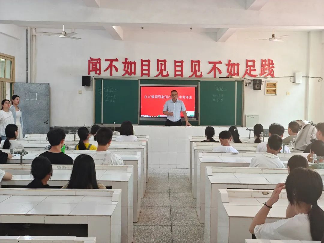 永興鎮 盛夏蟬鳴起,中考戰鼓急。6月18日,在莘莘學子即將奔赴考場的關鍵時刻,永興鎮黨委書記一行前往永興中學,親切看望慰問緊張備考的初三師生,為他們加油鼓勁,并送上慰問品。