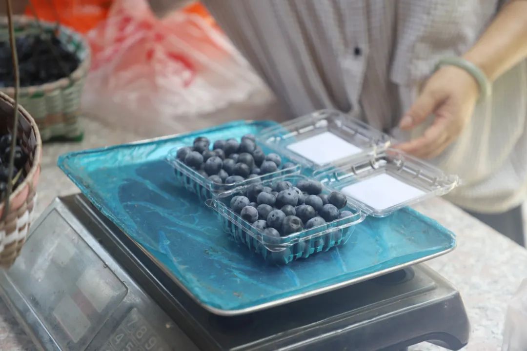 親手采摘的滿滿一籃藍莓 “我們的藍莓園嚴格按照無公害綠色農產品標準進行管理,采摘期從6月上旬持續到8月上旬,歷時近三個月?!痹{家庭農場負責人陳貴華說。 元之藍家庭農場擁有50畝藍莓種植基地,共栽種3000株藍莓樹,每株產量可達10-13斤。農場主營業務包括藍莓種植和苗木銷售,目前新鮮藍莓的銷售價格為35元/斤。