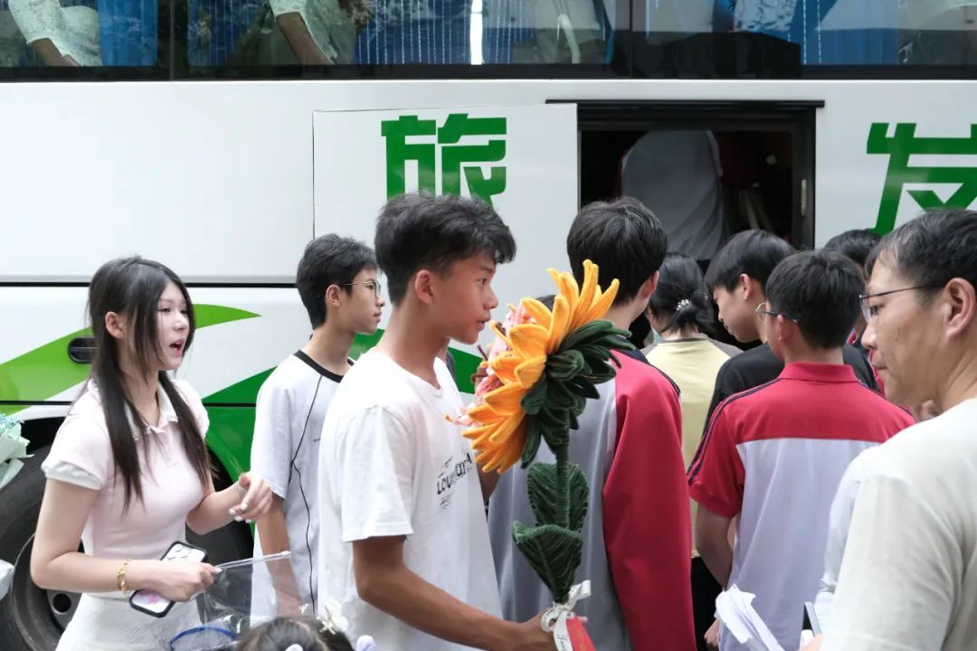 考生們走出考場 考試結束后,各考點門口洋溢著輕松與喜悅的氛圍。考生們步履輕快地走出考場,迎接他們的是家人們滿懷愛意的鮮花與擁抱,考生們與家長緊緊相擁,感謝他們一路的陪伴與支持。一位考生激動地說:“初中三年的努力在這一刻有了結果,我對自己的表現很滿意,接下來打算好好放松一下,然后為高中生活做準備。”
