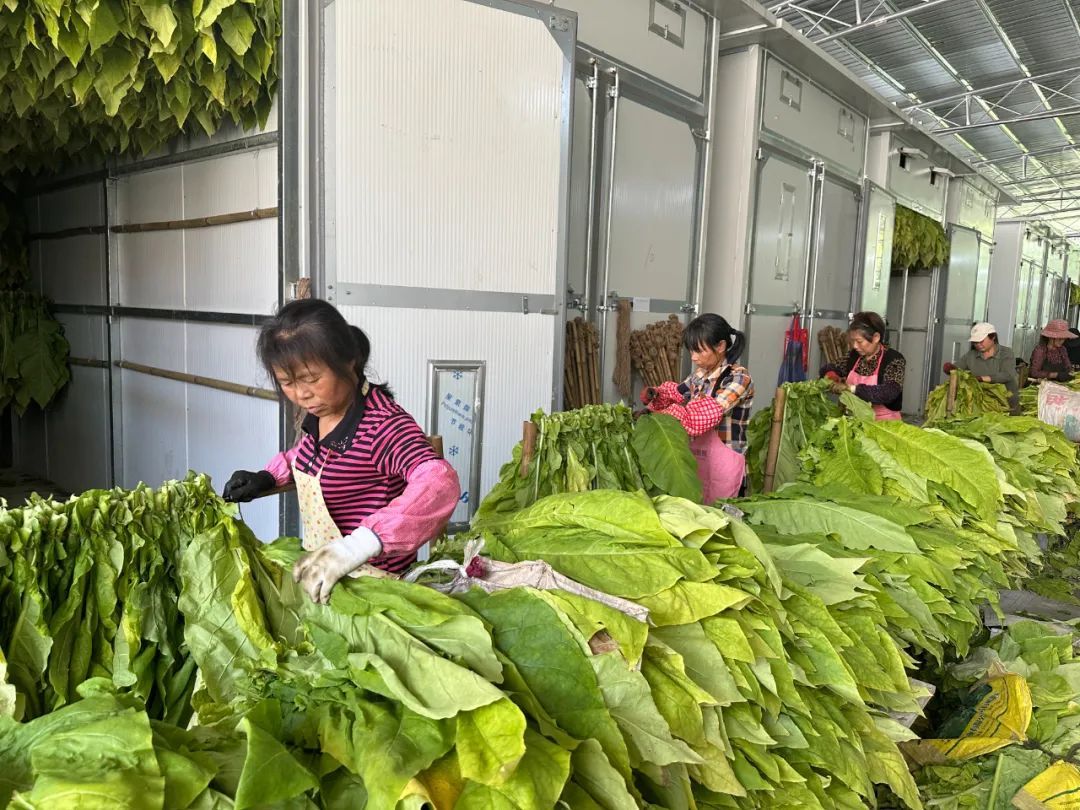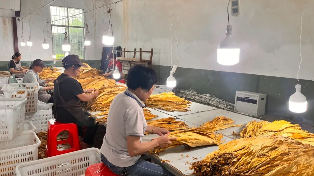 村民根據煙葉部位進行分類 進入采摘期后,每天都有附近的村民在基地務工,他們穿梭在煙田里,快速瞄準成熟的葉片,手握煙葉莖尾,熟練地把煙葉從煙株主莖上掰下。采收后的煙葉需立即進行綁桿、裝爐,進入烘烤階段。煙葉烤好后,需要村民根據煙葉的成熟度、顏色和上、中、下三個部位進行精細挑選和分類處理。村民黃阿姨對于能在家門口務工感到十分滿意:“在這里做工能兼顧家里,一天有140多元收入,挺好的。” 據介紹,永興鎮煙葉種植主要分布在前墩、銀場、珠山、永平村,待煙葉采摘完畢后,永興鎮將搶抓農時進行晚稻種植,實現煙葉與糧食生產質量和效益的提升,助力保障糧食安全。(張璐 柯聰 宿雯鑫) |