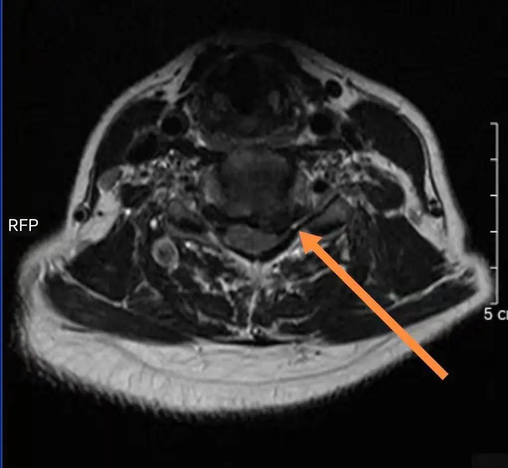 患者飽受神經根型頸椎病困擾數年,左上肢放射痛,痛如針刺,且腕背伸肌力降低至4級,坐臥不安。曾多次予針灸、口服藥物等保守治療,疼痛仍反復發作,沒有明顯改善。本次住院前一周,患者癥狀明顯加重,嚴重影響了日常生活,遂前來縣醫院就診。 入院后,骨科負責人、主任醫師陳如孫為其進行了詳細的查體,并仔細詢問病史,通過磁共振檢查發現:患者頸5-6椎間盤向左后方突出,明顯壓迫左側神經根,左側隱窩狹窄。