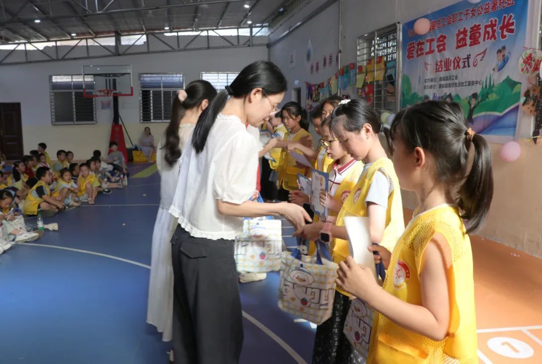 頒發(fā)結(jié)業(yè)證書和禮物 “孩子在這里交到了新朋友,學(xué)到了新知識(shí),整個(gè)人變得更積極上進(jìn)了。特別感謝老師們?cè)谘籽紫娜绽锏男燎诟冻觯哺兄x縣總工會(huì)辦了這么實(shí)在的活動(dòng),幫我們解決了暑期看護(hù)的大難題!”一位學(xué)生家長(zhǎng)的感慨道出了眾多職工的心聲。 作為浦城縣總工會(huì)關(guān)愛(ài)職工、服務(wù)職工的重要舉措,職工子女暑托班有效緩解部分職工子女暑期“看護(hù)難”問(wèn)題,在提升職工生活品質(zhì)的同時(shí),持續(xù)增強(qiáng)職工群眾的獲得感、幸福感與安全感。浦城縣總工會(huì)將總結(jié)經(jīng)驗(yàn)、優(yōu)化服務(wù),不斷提升暑托班的管理水平與服務(wù)質(zhì)量,力爭(zhēng)為職工群眾提供更優(yōu)質(zhì)、更貼心的保障,讓暑托班真正成為孩子們快樂(lè)成長(zhǎng)的樂(lè)園,成為職工家庭最堅(jiān)實(shí)的后盾。(馬啟燕) |