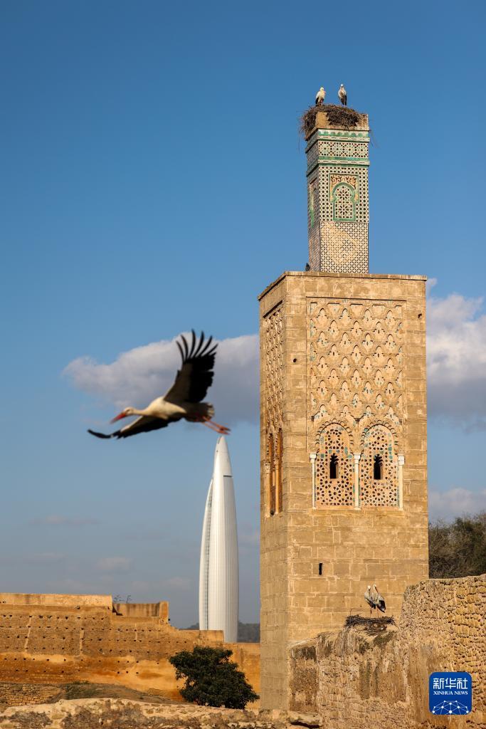 這是2月16日在摩洛哥首都拉巴特拍攝的棲居在舍拉考古遺址的鸛鳥。 舍拉考古遺址是摩洛哥首都拉巴特的著名旅游景點,由舍拉古城和摩洛哥梅里尼德王朝時期的皇家陵寢遺址組成。 新華社記者 霍晶 攝