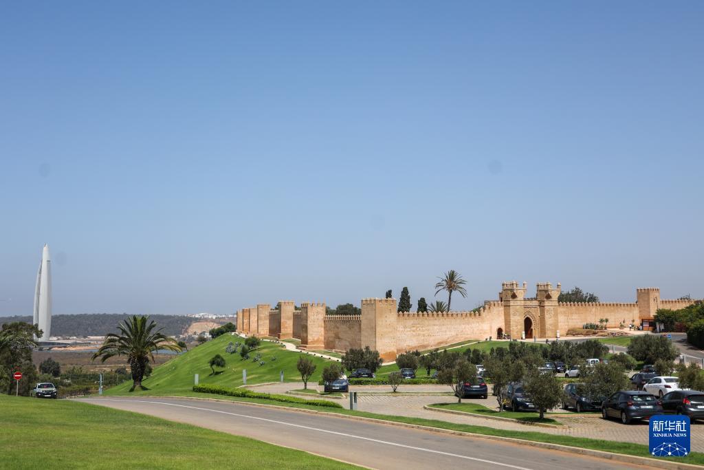 這是8月1日在摩洛哥首都拉巴特拍攝的舍拉考古遺址(右)和穆罕默德六世塔。 舍拉考古遺址是摩洛哥首都拉巴特的著名旅游景點,由舍拉古城和摩洛哥梅里尼德王朝時期的皇家陵寢遺址組成。 新華社記者 霍晶 攝