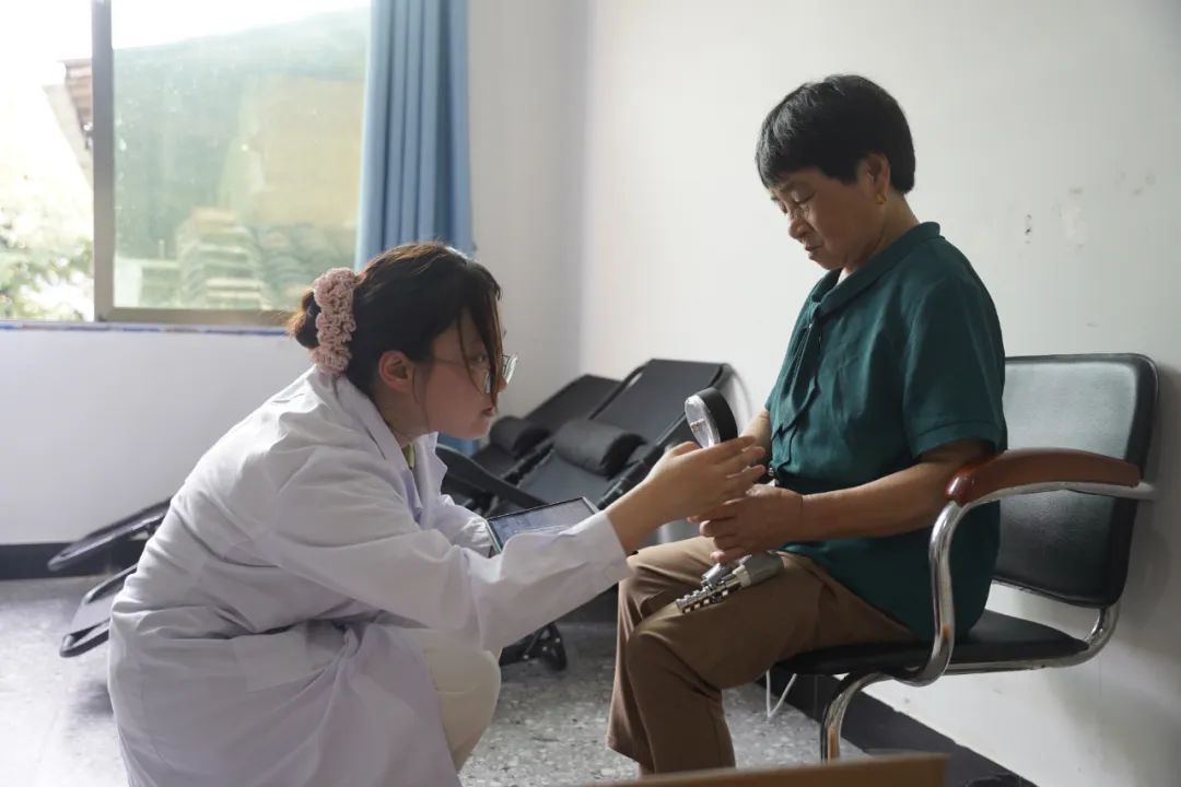 義診現場 活動在南浦街道光明社區(qū)、官路鄉(xiāng)高門村及富嶺鎮(zhèn)店亭村三個“銀杏樂齡家園”所在村(居)開展,老人們早早地就來到各個長者食堂等候,享受省里的醫(yī)生們提供的腦健康篩查、義診、檢測等多項服務。醫(yī)護人員不僅為老人們進行細致檢查,還開展了阿爾茨海默病、帕金森病的健康科普,用通俗易懂的語言講解疾病早期識別方法,幫助老年群體及家屬實現早發(fā)現、早干預。同時,醫(yī)護人員對老人進行了認知和運動功能篩查,全面篩查老年人腦健康狀況。